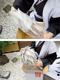 ビニールの袋に包んでウィッグを梱包しておりますので、形が崩れないように丁寧に取り出してください。