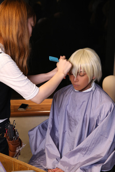 ・新作キャラウィッグ(安室透 風)の商品撮影の実演。